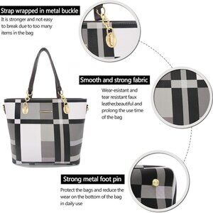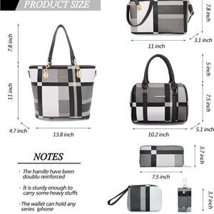 Features: This chic 6-piece set features smooth faux leather with sturdy hardware and easy-glide zippers. The large tote comfortably fits a 14-inch laptop or tablet, perfect for work or travel. The medium tote and shoulder bag are great for daily essentials like wallet, sunglasses, and cosmetics. The clutch and purse keep your keys and lipstick organized. The adjustable strap lets you wear the shoulder bag crossbody or over the shoulder, making this set super versatile.