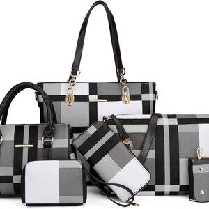 Women Designer Faux Leather Purse Set 6pcs Tote Shoulder Satchel Clutch