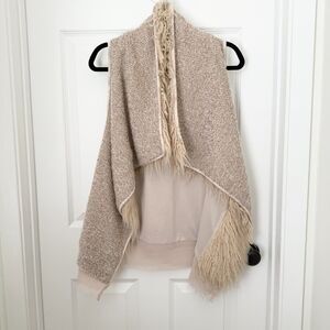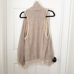Women Double Zero Sleeveless Vest Faux Fur Collar in Nude Pink Size Small