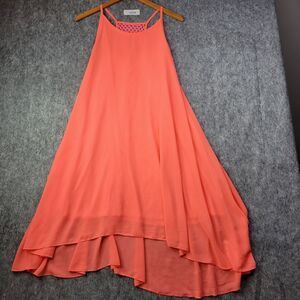Women Dress 3X Neon Pink Strappy Swim Cover Up Lined Bright Festival Trapeze Asymmetrical Hem