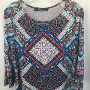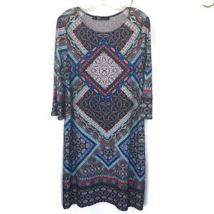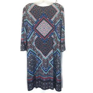 Women Dress Knit Sz 16 Be by Chetta Black Multi Print Half Sleeve Midi Colorful