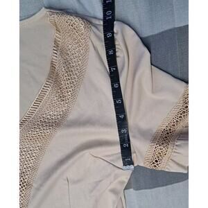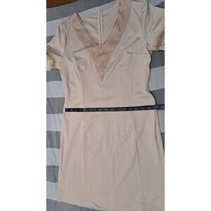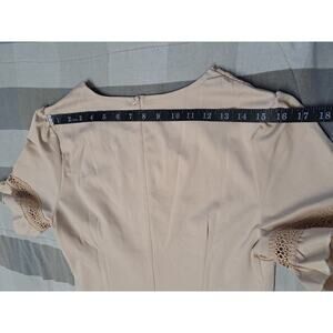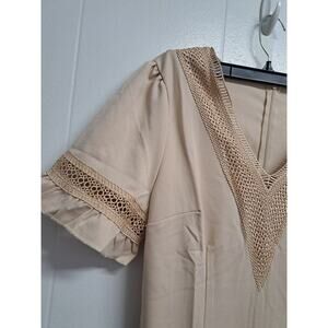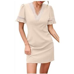 Women Dress Lace V Neck Ruffle Sleeve Casual Short Mini Dress Ligth Khaki Size M