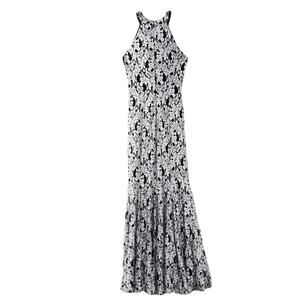 The Nightway Missy Women's Lace Scallop Keyhole Racer Trumpet Dress in size 8 combines elegant lace detailing with a sophisticated silhouette. Featuring scalloped edges and a keyhole neckline, this dress offers a refined and flattering fit that accentuates the figure. Its trumpet shape adds a graceful flare, making it an excellent choice for formal events or special occasions where style and comfort are paramount.