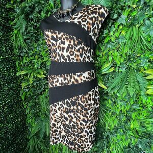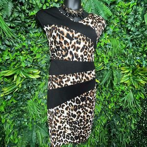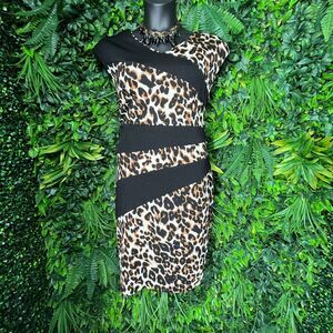 Spin Women Plus 3XL Black Leopard Dress V Neck Sheath Stretch Fitted 0976