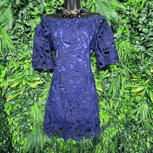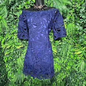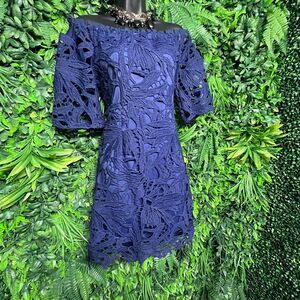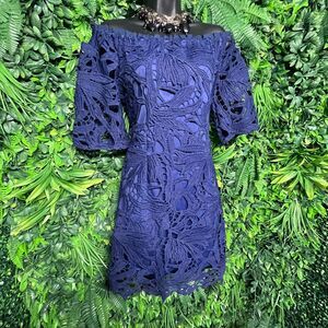 La Diosa Women Dress Small Blue Boho Off Shoulder Embroidery Lace Lined 1417