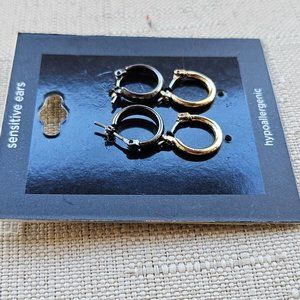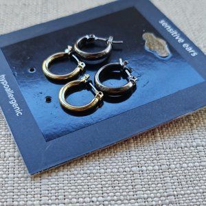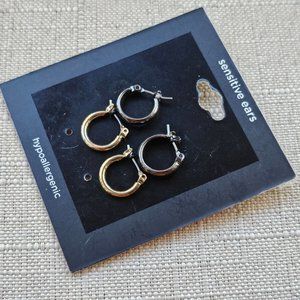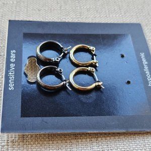 Women Earrings Set of 2 Small Hoop Earrings Black Gold Tone Fashion Jewelry New