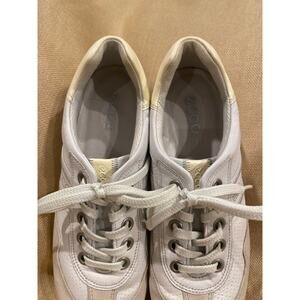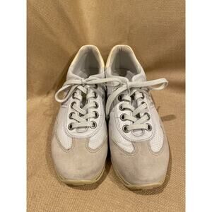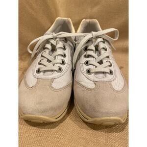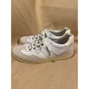 Women Ecco Sz 39. These are a white leather with a whitish gray suede. These have arch support and the soles are in good shape.