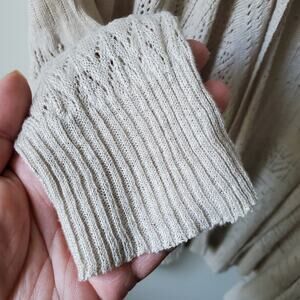 Women's Eileen Fisher beige 100% Linen Pointelle Knit Cardigan Sweater Size XS.