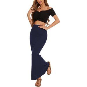 Women Elastic High Waist Stretchy Skirt Navy Blue