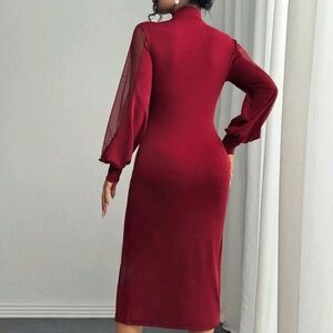 Women Elegant Mesh Patchwork Round Neck Shift Dress, For Autumn