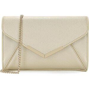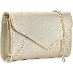 Women Envelope Clutch Faux Saffiano Leather Evening Handbag Gold