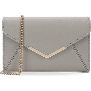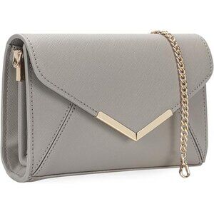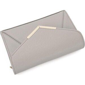 Women Envelope Clutch Faux Saffiano Leather Evening Handbag Gray