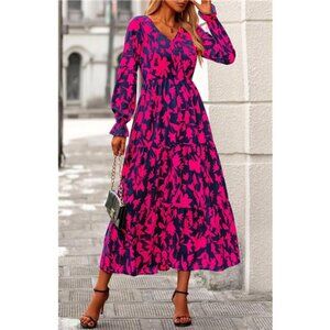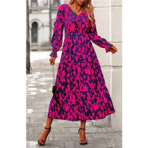 - Casual Long Floral Maxi Dress - Rendered With V Neck, Ruffle Cuffs, Elastic High Waist, Floral Pattern Help Flatter The Relaxed Silhouette. This Boho Long Dress Features A Stylish V Neck, Enhancing Your Neckline And Creating An Elegant Look. Adorned With Printed Patterns And Ruffle Cuffs, Women Flowy A-Line Dress Adds A Touch Of Femininity
