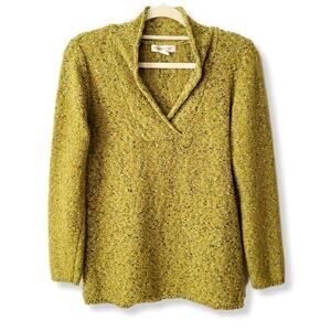 Women Fall Lemongrass Yellow Speckle Sweater M Earthy Rustic Classic Cozy Warm