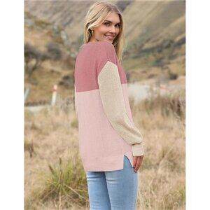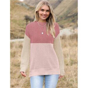 Women Fall Lightweight Oversized Sweater Pink Khaki