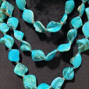 Women Fashion Blue Irregular Turquoise Trible Strand Necklace with Lobster Clasp.