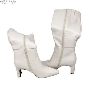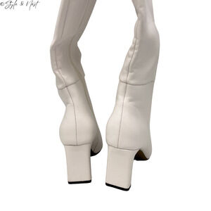 KNEE-HIGH GOGO BOOTS, CHUNKY BLOCK HEEL, RETRO 60S MOD VIBES, Y2K REVIVAL ESSENTIAL, PATENT LEATHER SHINE, SQUARE TOE TREND, WHITE BLACK COLOR OPTIONS, PLATFORM LIFT SILHOUETTE, FESTIVAL DISCO READY, COQUETTE STATEMENT FOOTWEAR, VINTAGE DANCER AESTHETIC, PULL-ON STRETCH FIT, CUSHIONED INSOLE COMFORT, LIKE NEW PRE-LOVED, URBAN NIGHT OUT MUST, BOLD HEEL STABILITY, TIMELESS WARDROBE STAPLE, MACHINE WIPE CLEAN, FLATTERING CALF HUG, RETRO GO-GO GIRL GLAM, WESTERN, FESTIVAL, RAVE, 90'S, RETRO.