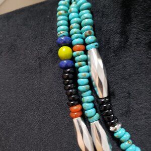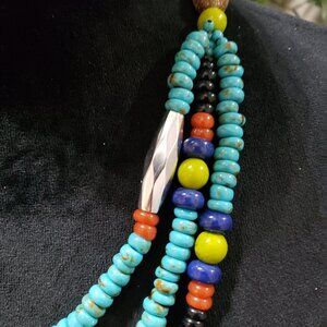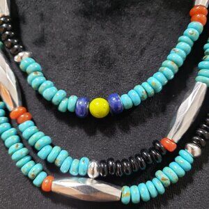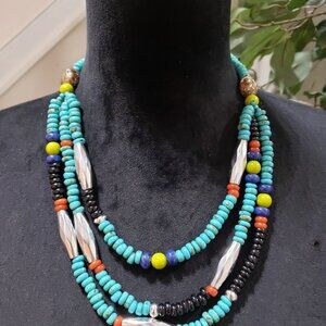 Women Fashion Native Turquoise Bead 3 Strand Collar Necklace with Lobster Clasp.