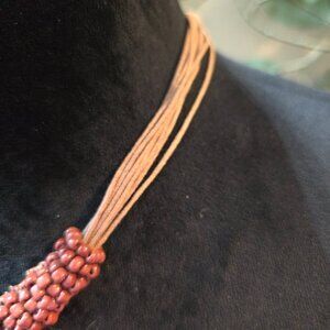 Women Fashion Orange Flowers & Plants Beaded Pendants Necklace with Button Clasp.