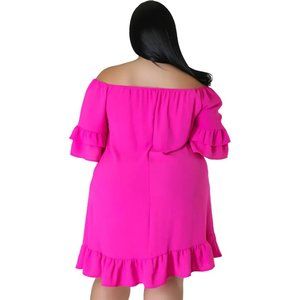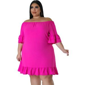 Women Fashion Plus Size Loose Off Shoulder Ruffled Dress