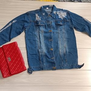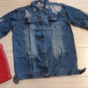 Women Fashion Plus Size Rhole Back Denim Jacket