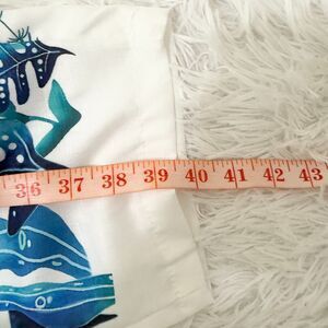Women Fashion Seagrass Turtle Print Slant Pockets Pants in Blue White Size Large