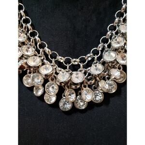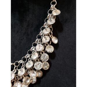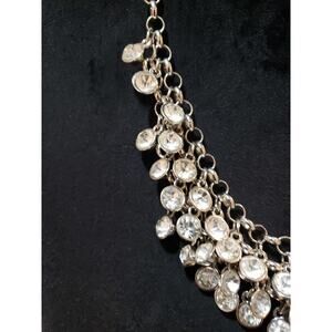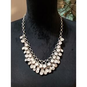 Women Fashion Silver Tone Crystals Cluster Bib Necklace Jewelry w/ Lobster Clasp.
