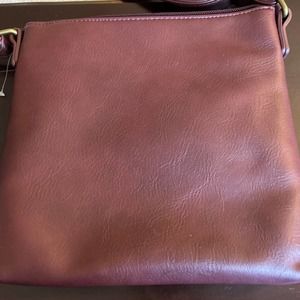 Women Faux Leather Burgundy Crossbody Shoulder Bag Stylish Handbag Soft Tote.