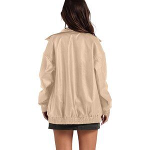 Women Faux Leather Jacket Oversized Apricot Bomber Coat Fall Winter Outfits