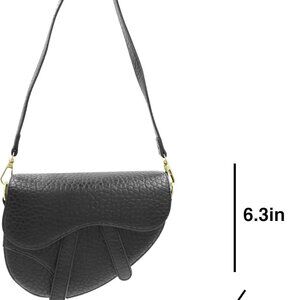 Features: Crafted from soft, textured faux leather with a unique saddle shape. This bag offers triple-layered closure with a zipper, flap, and snap for added security. Comes with both a long, adjustable strap and a short handle, giving you multiple styling options—shoulder, crossbody, clutch, or tote. Spacious enough for your phone, wallet, keys, sunglasses, and touch-up makeup.