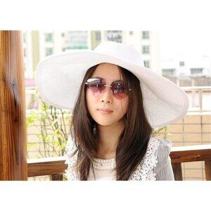 Women Floppy Derby Hat Wide Large Brim Beach Straw Sun Cap