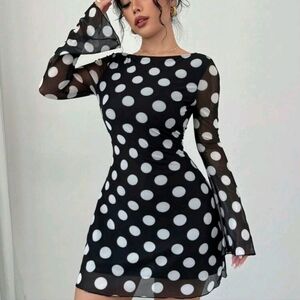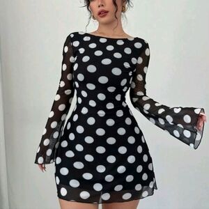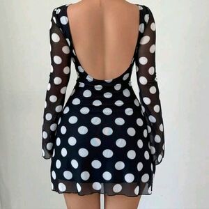 Women Floral Backless Bell Sleeve Mesh Mini Bodycon Slip Dress