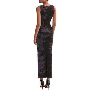 Women Floral Bodycon Sleeveless Mesh Maxi Dress Black