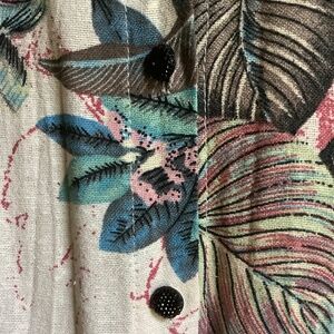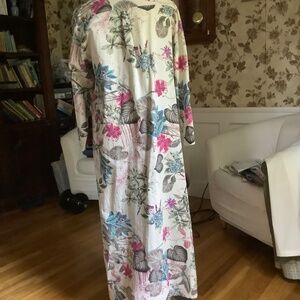 This dress in in great condition. Button down design with two side pockets. 3/4 sleeves. Shoulders 17.5 in, bust 40 in, length 50 in. Comes from pet free, smoke free home.