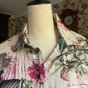 Women Floral Cotton Blend Button Down Maxi Shirt Dress Size L