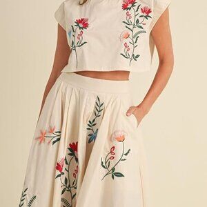 Women Floral Embroidery Dress 2 Piece Tank Top and Skirt Loose Fit Boho