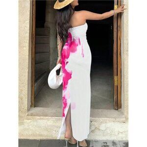 Women Floral Tie-Dye Print Fitted Elegant Midi Dress