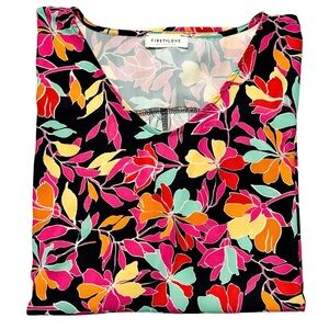 🌸 Statement Style! This First Love by Lovelyn oversized floral blouse is bold, bright, and beautiful. Hot pink, orange, yellow, and aqua flowers pop against a chic black background. Designed with a relaxed oversized fit, cuffed short sleeves, and back pleats that drape perfectly.