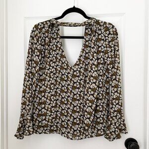 Women Fluter by Dance & Marvel Floral Deep V-neck Blouse