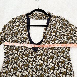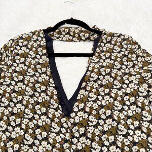 Women Fluter by Dance & Marvel Floral Deep V-neck Blouse in White Mustard Small