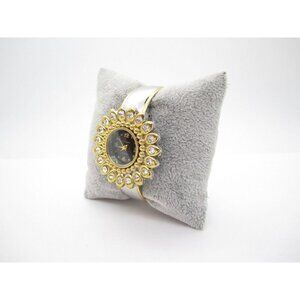 Women Geneva Quartz WR Analog 39mm Dial Causal Round Flower Bangle Watch (E580)