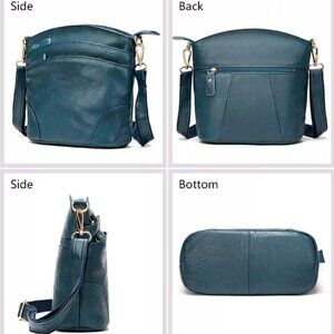 Solid color style. Made of genuine leather top with Polyester lining.
