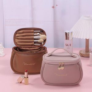 Unique and chic shape, small and easy to carry. Large opening design with high-quality double zippers for for easy access. The interior of the cosmetic bag is designed with multiple partitions and compartments, which can hold brushes, cosmetics, toiletries and sort them in an orderly manner, so you can find them quickly to save time.