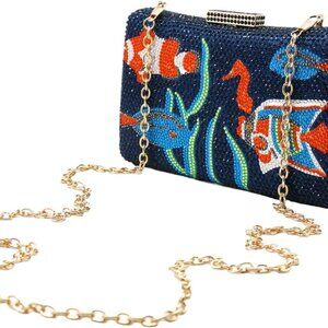 Women Glitter Fish Pattern Crystal Evening Bag — Sparkle with playful elegance.