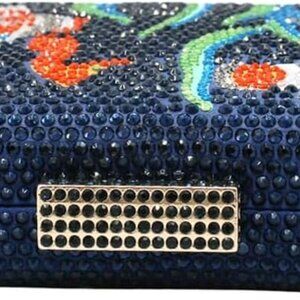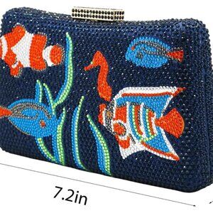 Features: Stunning square-shaped fish pattern evening bag encrusted with fine rhinestone crystals. Soft faux leather lining inside, with a versatile detachable chain for multiple styling options. Perfect for holding your essentials like phone, cards, keys, and lip gloss.