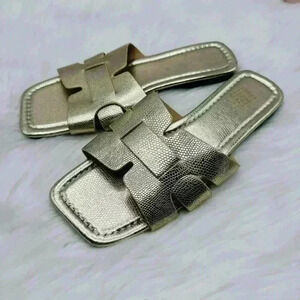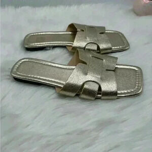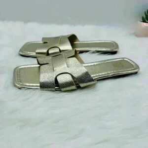 Women Gold Faux Snakeskin Embossed Slides size 7