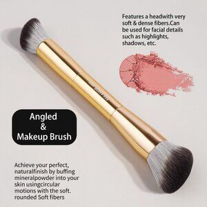 Dual-head design: multifunctional double ended makeup brushes for dry foundation, powder, and concealer. The larger brush head can modify your facial contour and neck. The small brush head is suitable for modifying the shape of eyes, nose bridge, and lips