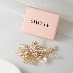 🆕Women Gold Hair Comb Handmade Rose Gold Bridal Hair Accessory for Weddings