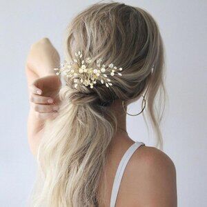 🆕Women Gold Hair Comb and 4 Pins Bridal Pearl Crystal Wedding Hair Comb
