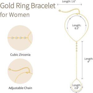 * Premium Materials: This ring hand bracelet is crafted from 14k gold plated materials, ensuring durability and long-lasting shine for comfortable wear, waterproof and non tarnish